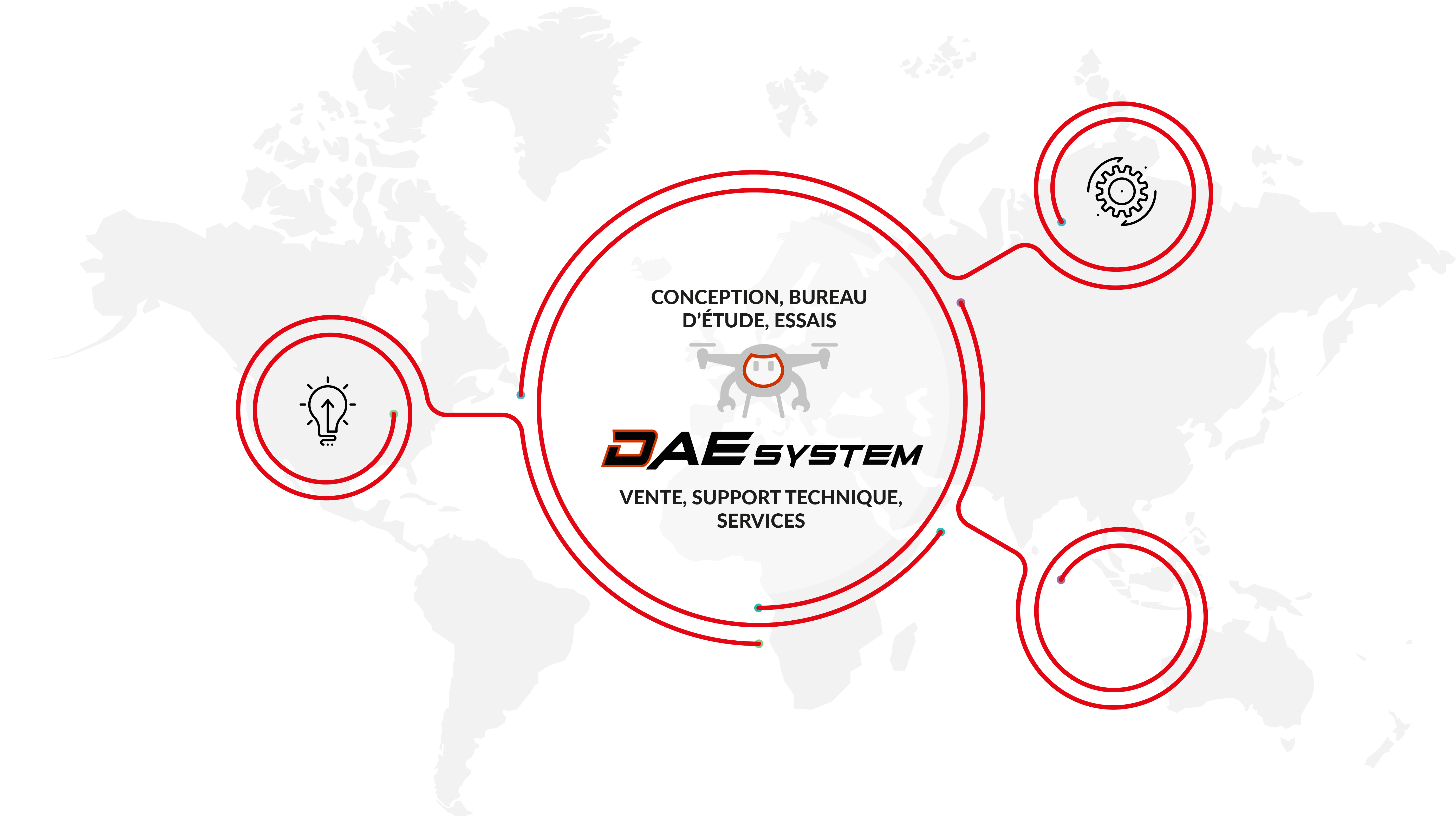 Spécifique drone : Conception complète (ESC, carte de vol et carte tierce adaptée de contrôle et gestion décentralisé de datation), bancs d’essais drone DAE SYSTEM